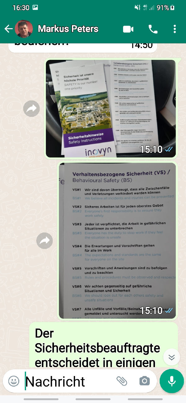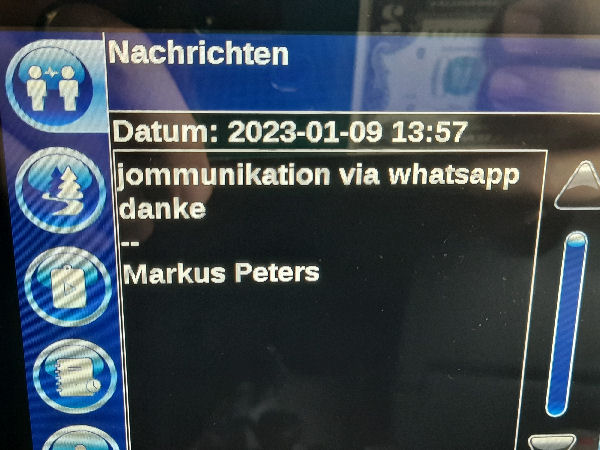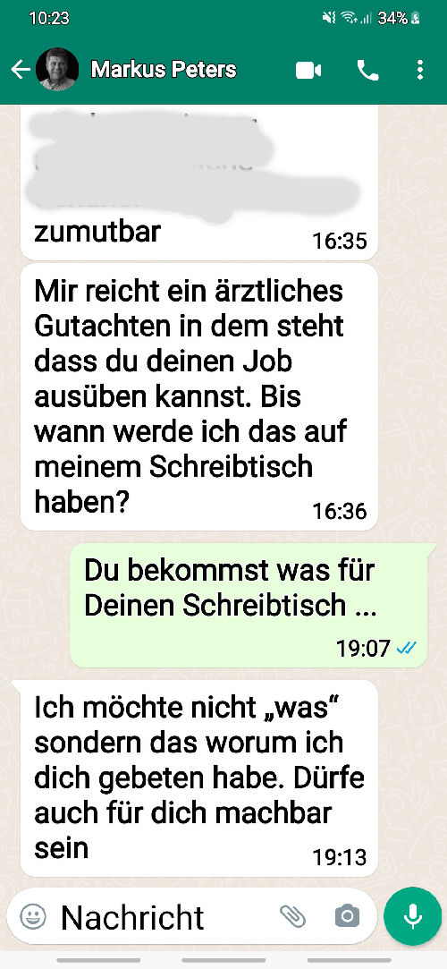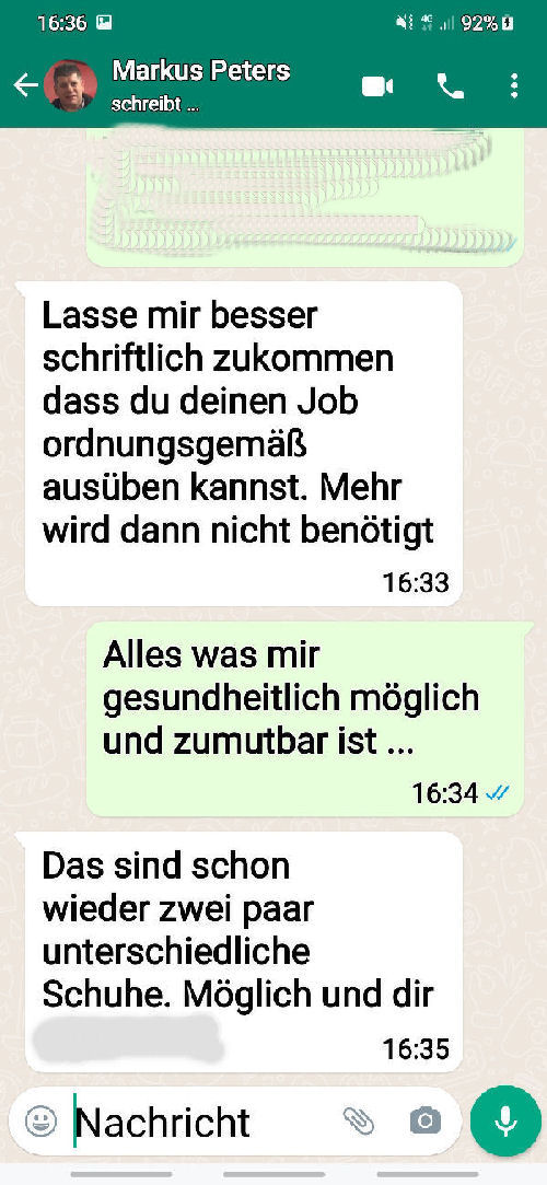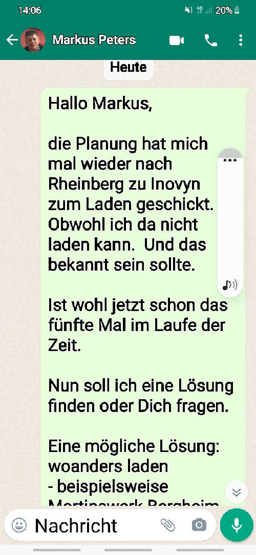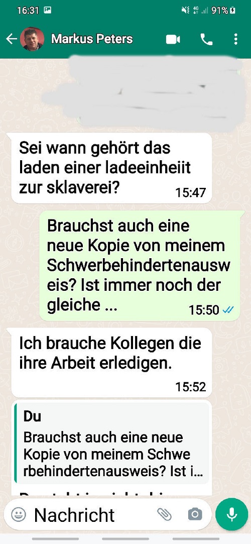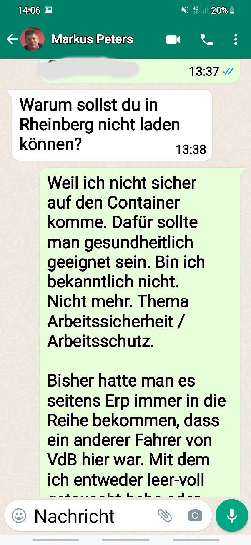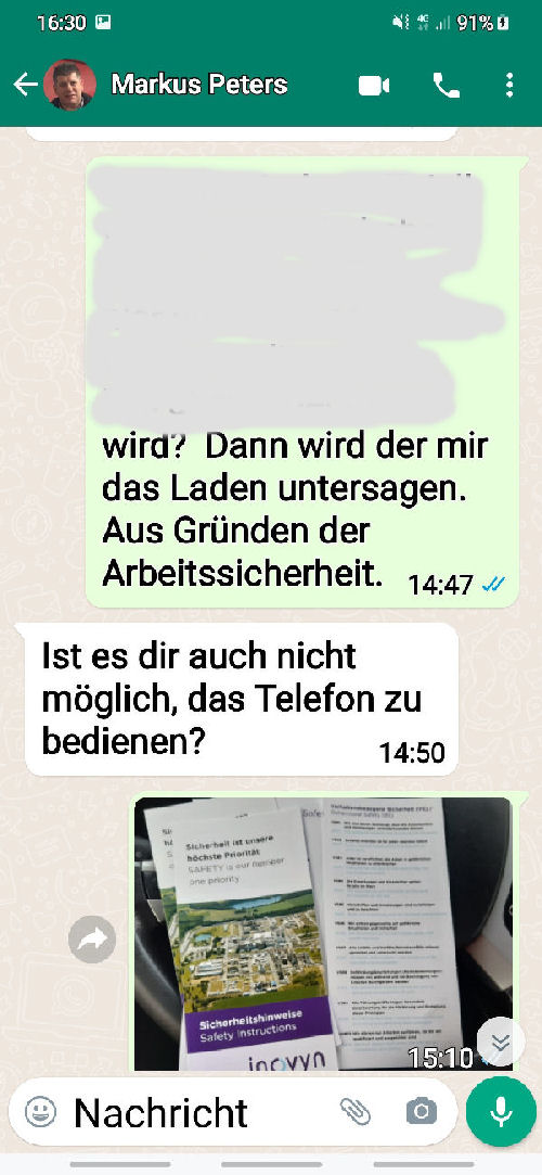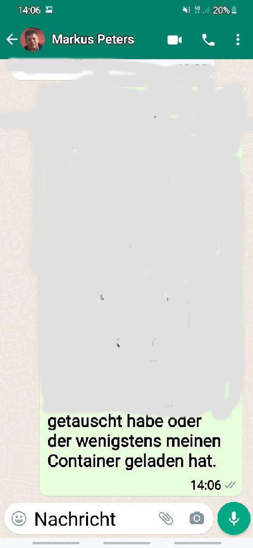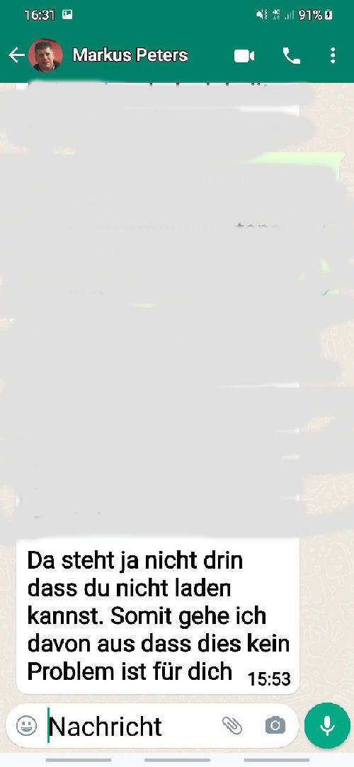 ![]() The following is the written communication with Markus Peters via WhatsApp. Only the spoken or verbally given word is - in my experience over many years - is occasionally not worth very much. I therefore avoid corresponding telephone calls without the presence of witnesses. |